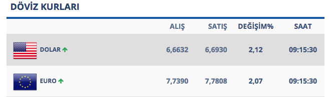 Kapalıçarşı'da 6,6250 liradan alınan dolar 6,6270 liradan satılıyor. 7,7630 liradan alınan avronun satış fiyatı ise 7,7650 lira olarak belirlendi.