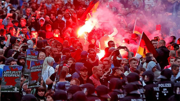 ALMANYA'da bir festival sırasında Suriye uyruklu iki kişinin bir Alman'ın öldürmesiyle başlayan ırkçı gösteriler sürüyor. Hafta sonu başlayan ve devam eden gösterilerde şu ana kadar çok sayıda kişinin yaralandığı açıklandı.
