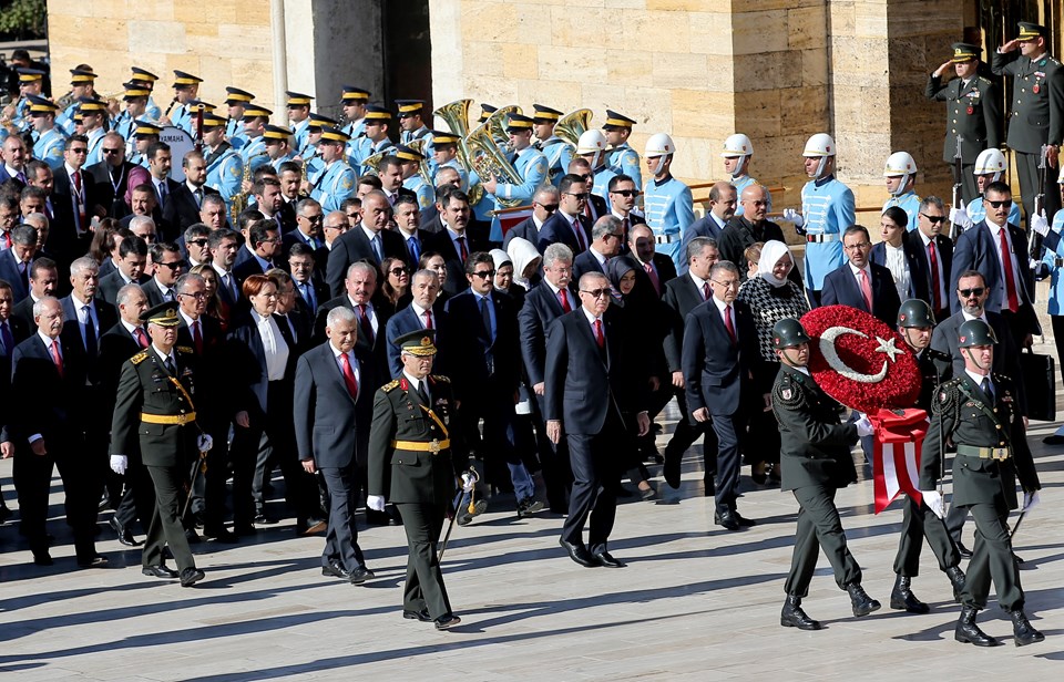 Cumhurbaşkanı Recep Tayyip Erdoğan, başkanlığındaki devlet erkanı Anıtkabir'i ziyaret etti.
