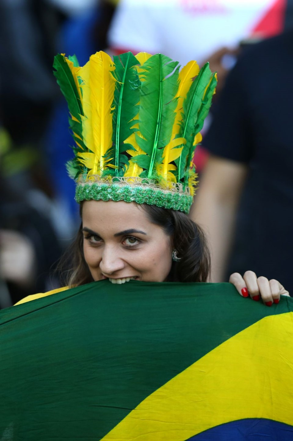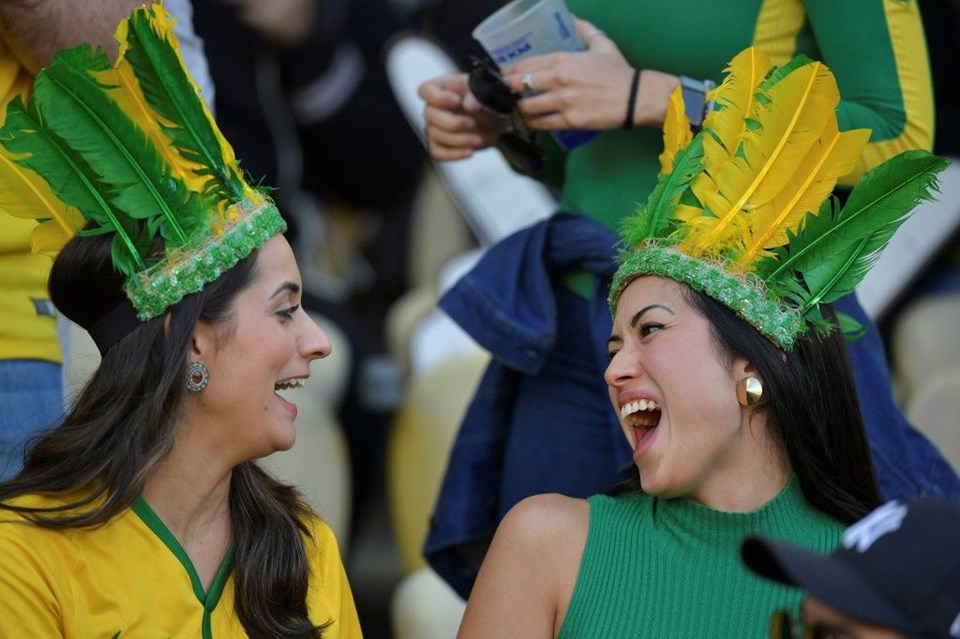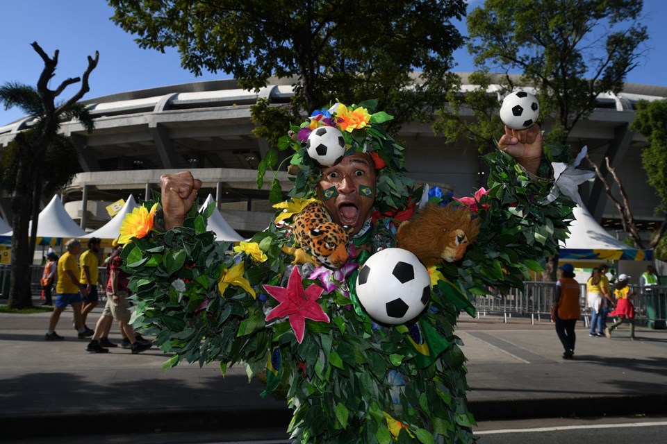 Maracana Stadı'nın tribünlerini hıncahınç dolduran taraftarlar, renkli kostümleriyle karnaval havası oluşturdu. İşte geceden yansıyan renkli kareler...