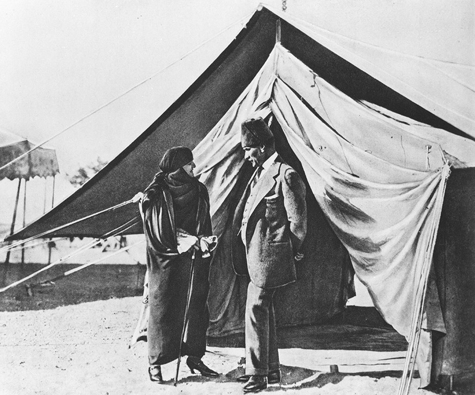 23 Mayıs 1923 - Çankaya Köşkü bahçesinde çadır önünde sohbet ederken.