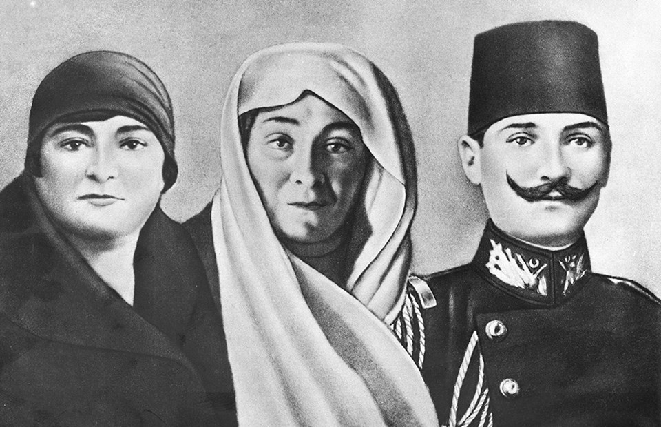 1 Ocak 1930 - Annesi Zübeyde Hanım (ortada) ve kız kardeşi Makbule Hanım (solda) ile birlikte.