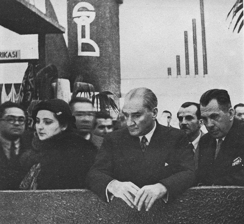 10 Ekim 1934 - Yerli mallar sergisinde yetkililerden bilgi alırken.