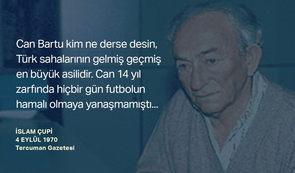"Kulübümüzün tarihinde çok önemli bir yeri olan, adı Fenerbahçe'miz ile özdeşleşmiş efsanemiz Can Bartu'yu kaybettik. Bu büyük kaybın derin acısını ve üzüntüsünü yaşıyoruz. Fenerbahçe'mizin ve Türk sporunun değerli ismi Can Bartu'ya Allah'tan rahmet; değerli ailesi, sevenleri ve tüm camiamıza başsağlığı dileriz. Mekanı cennet olsun."