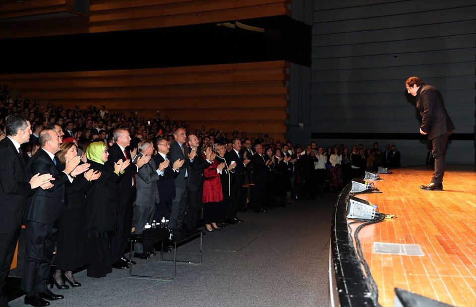 Cumhurbaşkanı Erdoğan, ATO Congresium'da düzenlenen Fazıl Say'ın "Truva Sonatı"nın Ankara Prömiyeri'ni izledi.