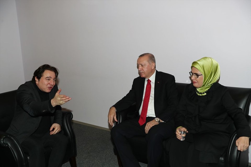 Daha sonra Cumhurbaşkanı Erdoğan'ın eşi Emine Erdoğan ile Cumhurbaşkanı Yardımcısı Fuat Oktay ve Dışişleri Bakanı Mevlüt Çavuşoğlu ile kulise geçen Erdoğan'a, Fazıl Say, burada da tekrar katılımlarından dolayı teşekkür etti.