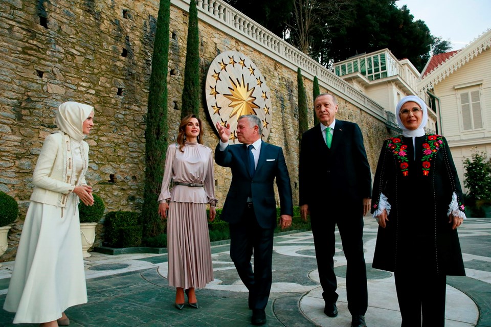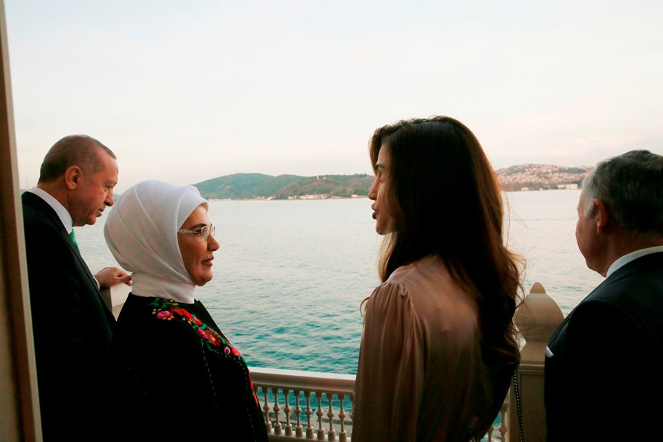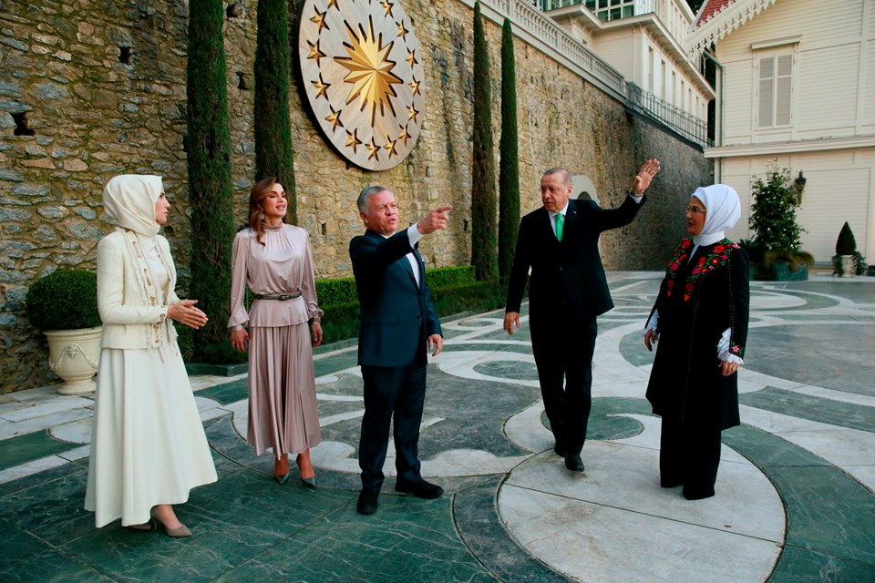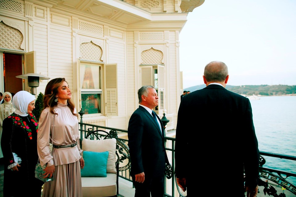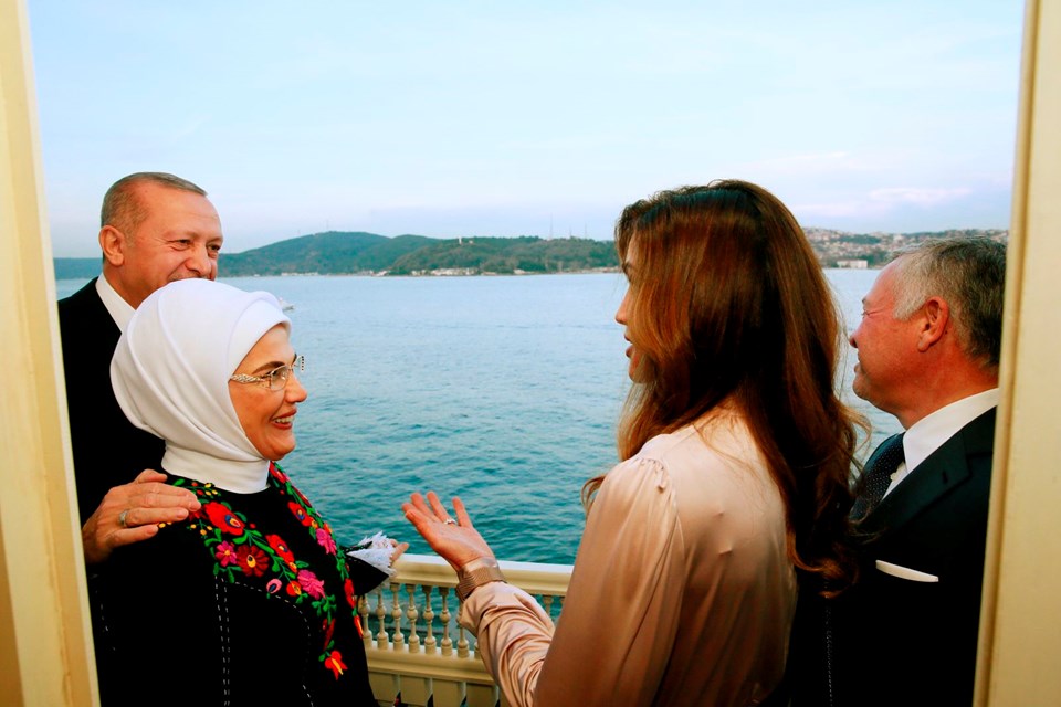 Emine Erdoğan, "Ürdün Kralı II. Abdullah ve Kraliçe Rania el Abdullah ile güzel bir İstanbul akşamı geçirdik. Nazik ziyaretleri için teşekkür ediyorum" notuyla fotoğraf paylaştı.