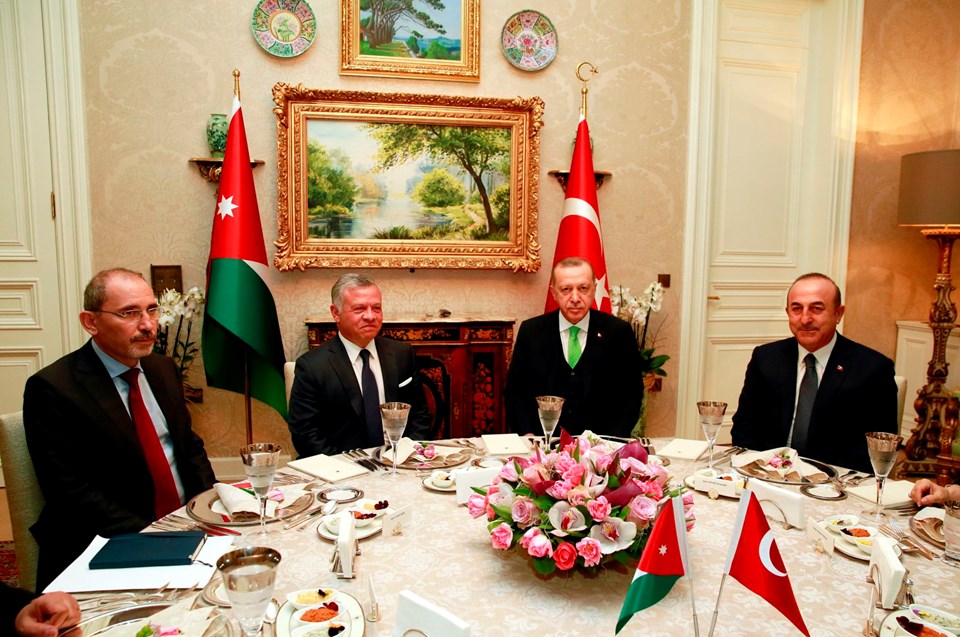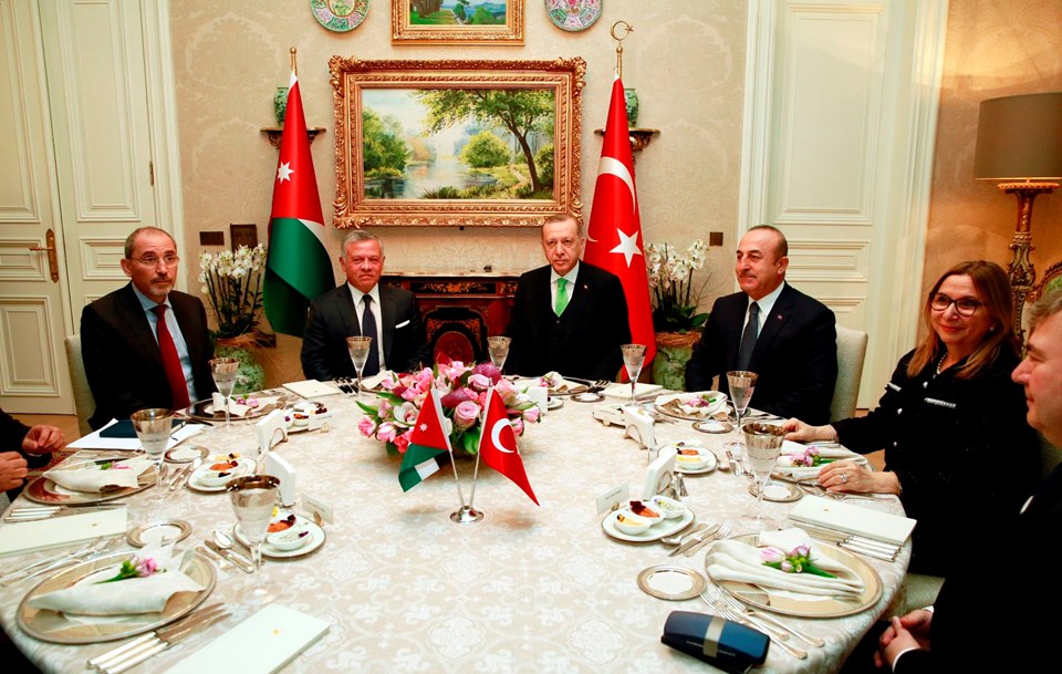 Erdoğan ve 2. Abdullah'ın bir araya geldiği yemekte, Dışişleri Bakanı Mevlüt Çavuşoğlu ve Ticaret Bakanı Ruhsar Pekcan yer aldı.