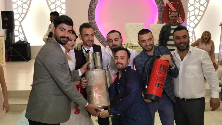 Yangın tüpü de grubumuzun simgesi haline geldiği için yanında onu da verdik. Kardeşimiz çok sevindi ve çok eğlenceli dakikalar yaşadık. Herkes çok eğlendi. Grubumuzdaki tüm arkadaşlarımız evlenince farklı hediyeler vereceğiz. Kardeşimize bir ömür boyu Dinamit Gençlik grubu olarak mutluluklar diliyoruz" dedi.