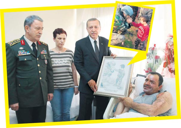 Külliye’de çekilen fotoğraftda, Binbaşı Necmettin Tetik’in kara kalem çizimin yer alması dikkat çekti. Tetik, Şırnak’ta küçük bir çocuğun elini nefesiyle ısıtırken objektiflere yansımıştı. Daha sonra Mardin’de bir operasyonda yaralanan Tetik’i, Erdoğan ziyaret etmişti. Ziyarette Erdoğan’a, Tetik’in fotoğrafının çizimi hediye edilmişti.