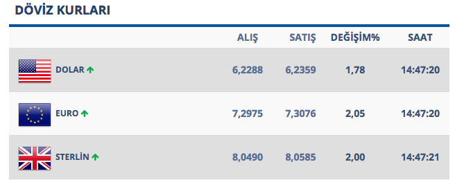 Dün 5,9747 - 6,2990 aralığında dalgalı bir seyir izleyen dolar/TL, bugün 6,20'in üstünde geziniyor. Sabah saat 10.05 itibarıyla önceki kapanışa göre yüzde 1,35 artışla 6,20'nin üstüne çıkan dolara euro da eşlik etti. Dolar kuru öğleden sonra ise 6.23'leri gördü. Euronun satış fiyatı da saat 14.45 itibariyle 7.30'a kadar çıktı.