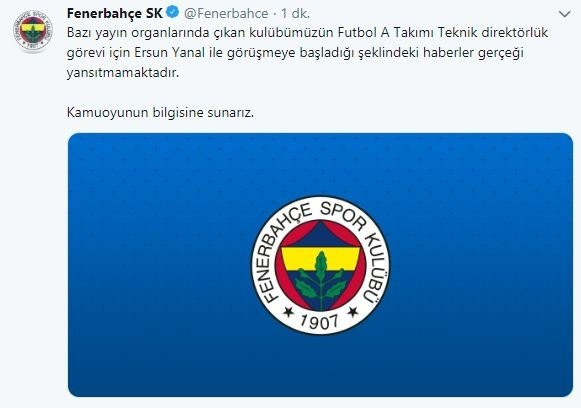 "Bazı yayın organlarında çıkan kulübümüzün Futbol A Takımı Teknik direktörlük görevi için Ersun Yanal ile görüşmeye başladığı şeklindeki haberler gerçeği yansıtmamaktadır. Kamuoyunun bilgisine sunarız."