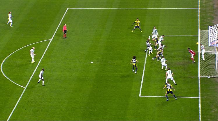 20’nci dakikada Fenerbahçe golü buldu. Sağ kanatta Isla’nın ceza sahası içerisine doğru yaptığı ortada Soldado, rakibinin markajına rağmen röveşata vuruşu yaparak meşin yuvarlağı kaleci Muhammed’in sağından filelerle buluşturdu: 0-1.