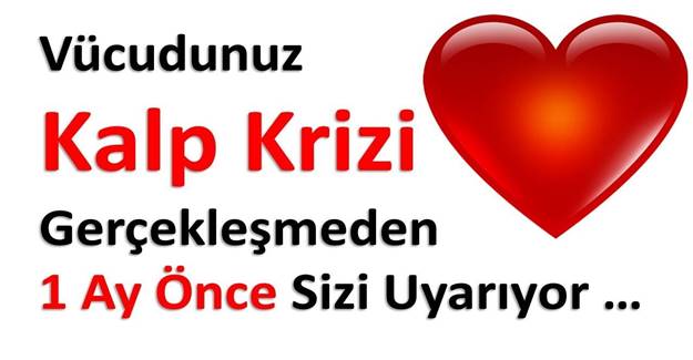 Kalp krizi geliyorum diyor! Kalp krizi geçireceğiniz 1 ay önceden haber veriliyor. Bu belirtilere önem vermek, dikkat etmek kalp krizi riskini azaltıyor. Başka kendi sağlığınız için, sağlıktan da öte canınız için, aşağıdaki belirtilere dikkat edin. Asla es geçmeyin, önsememezlik etmeyin.