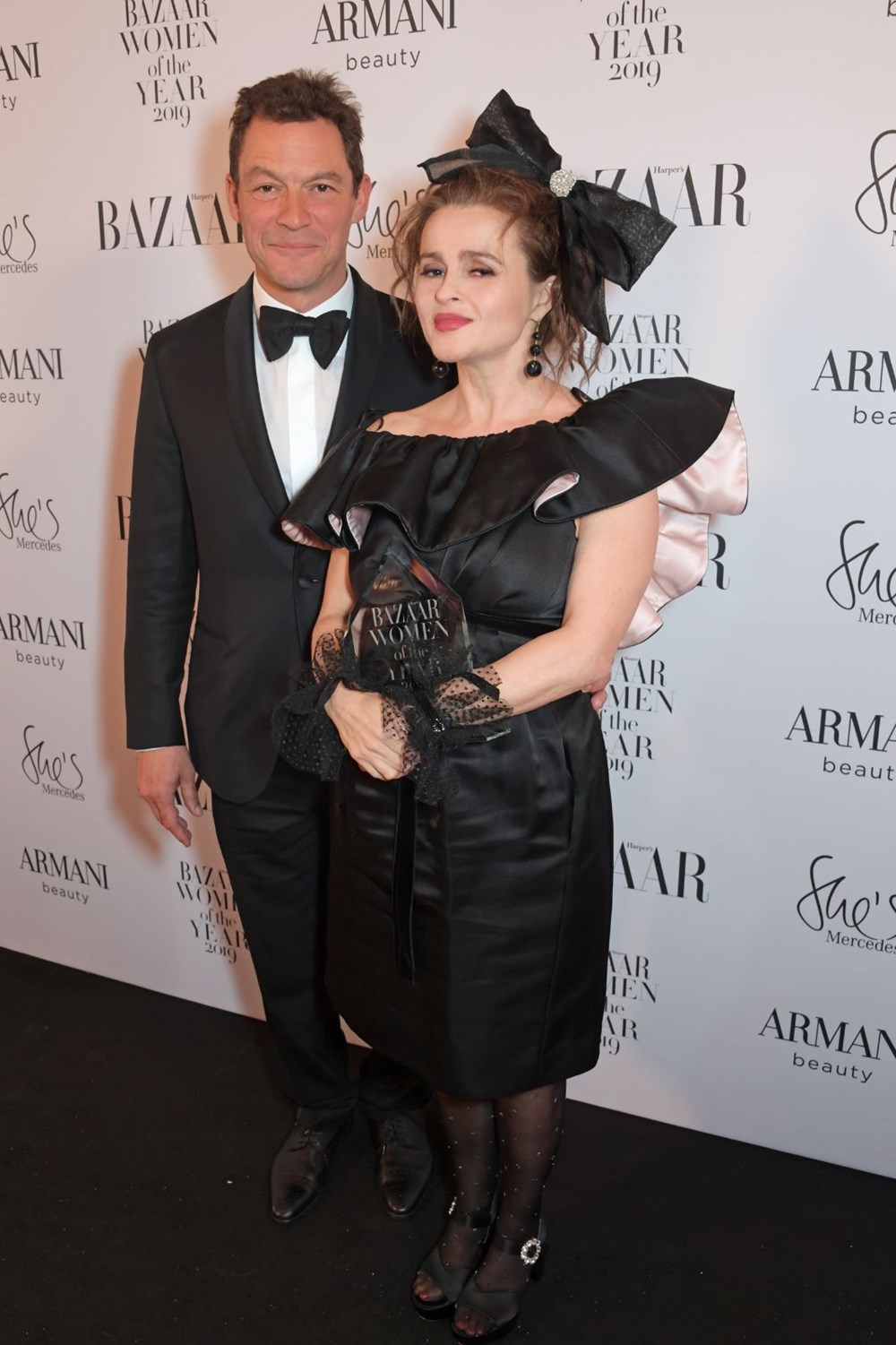 Dominic West, Helena Bonham Carter'a sahnede İngiliz İkon Ödülü'nü takdim etti.