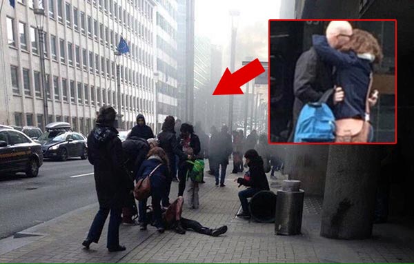 Maelbeek metro istasyonunda çekilen bu kare de dehşetin boyutlarını gözler önüne serdi. Metrodaki patlamanın ardından içeride mahsur kalanlar oldu, bazı insanlar da yaralı halde kendilerini dışarı attı. Patlamanın şokuyla ilk anda korkuyla birbirine sarılan bir çift ve yerde yardım isteyen bir yaralı dikkat çekti. Bu kare nedeniyle çift eleştirilerin hedefi olmuştu. Oysa geçek görünfüğü gibi değildi. Saldırının şokunu atlatan çift yayınlanan o kareden sonra yerde yatan yaralıların yarmına böyle koştu.