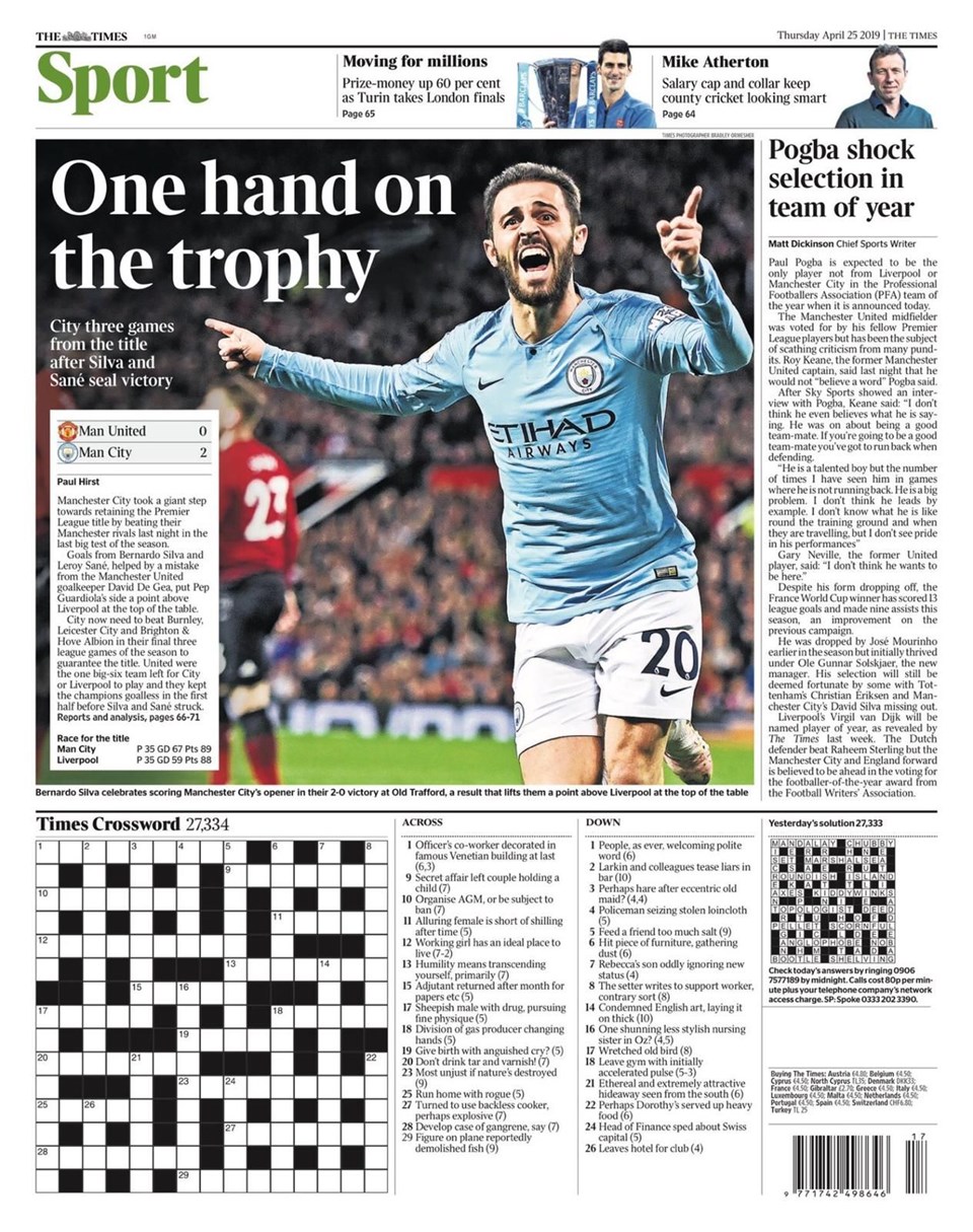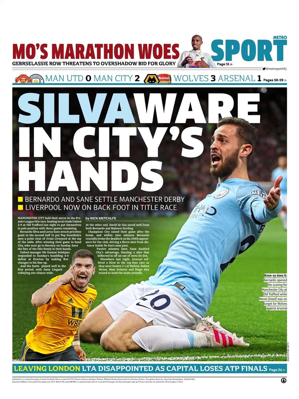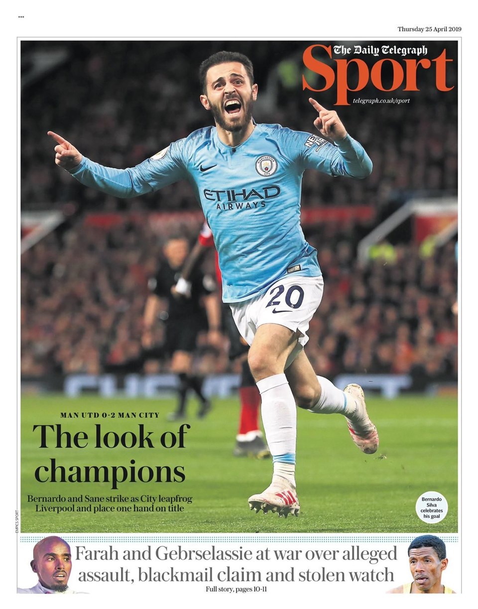 İngiltere Premier Lig'de Manchester United'ı deplasmanda 2-0 mağlup eden Manchester City bitime üç hafta kala yeniden liderliğe yükseldi. İngiliz basınında City’nin zirveyi yeniden alması geniş yer buldu.