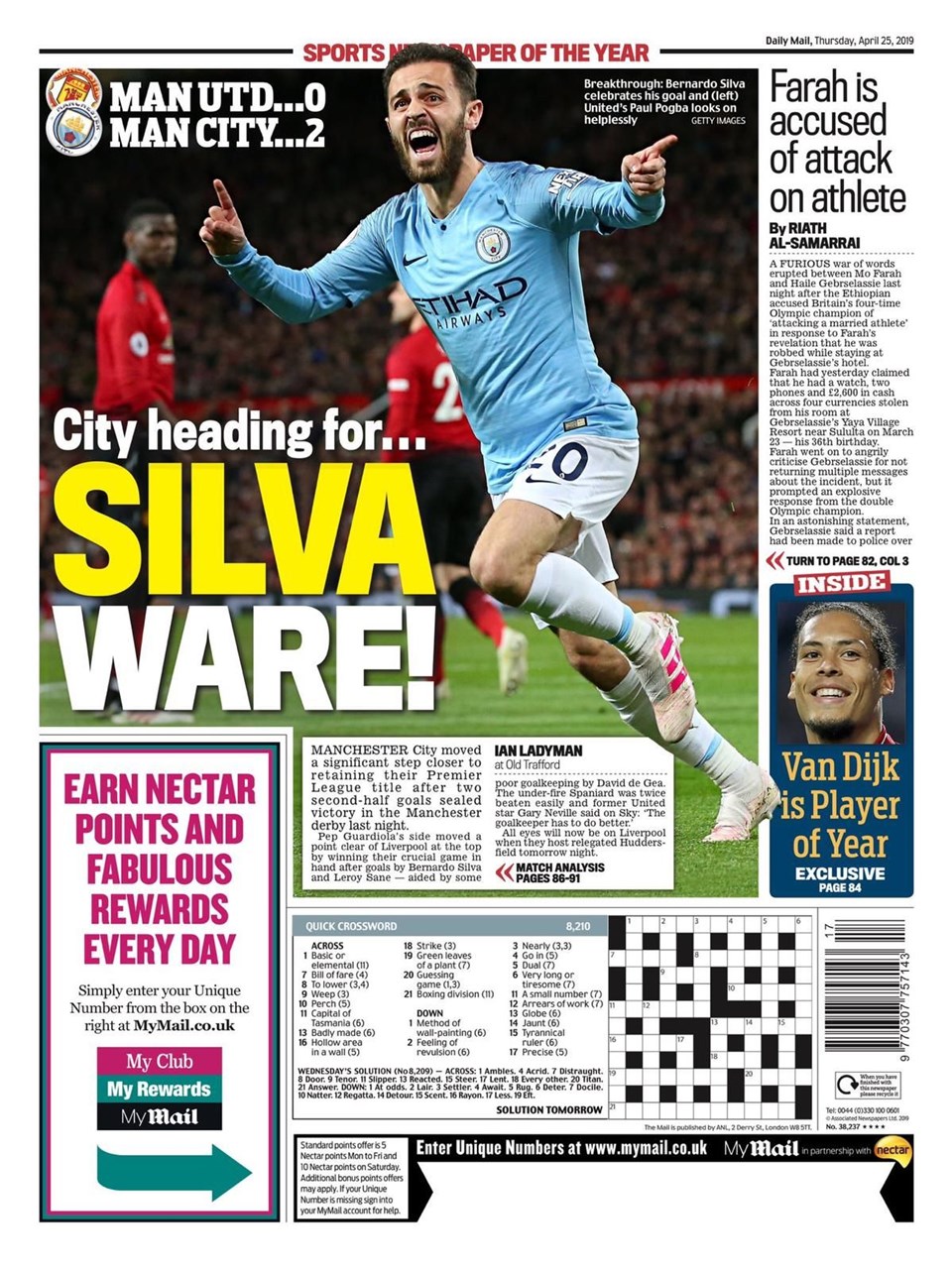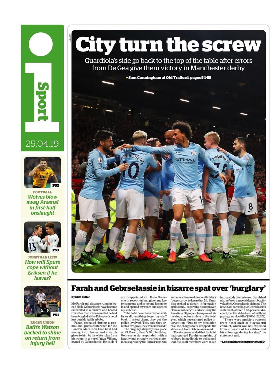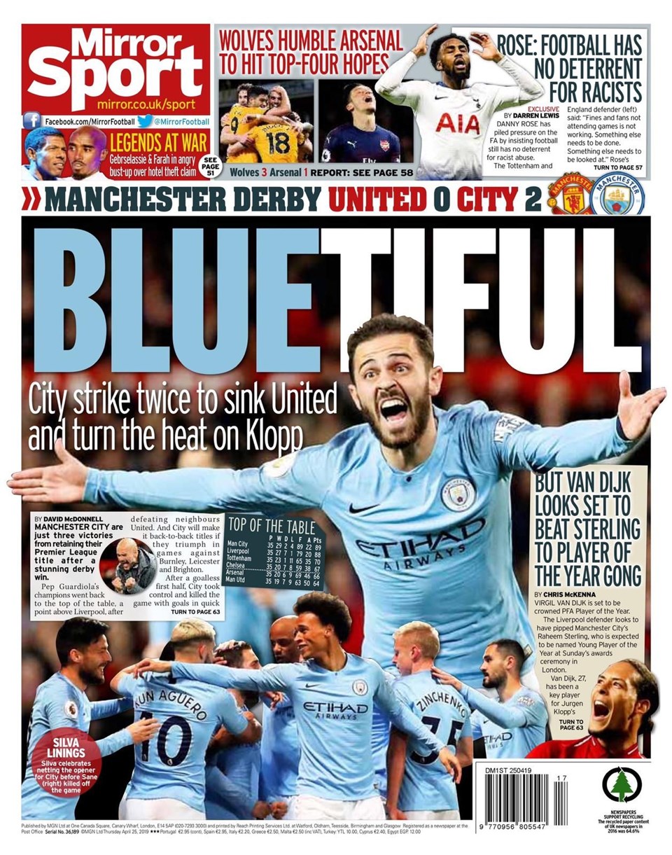 İngiltere Premier Lig'de Manchester United'ı deplasmanda 2-0 mağlup eden Manchester City bitime üç hafta kala yeniden liderliğe yükseldi. İngiliz basınında City’nin zirveyi yeniden alması geniş yer buldu.