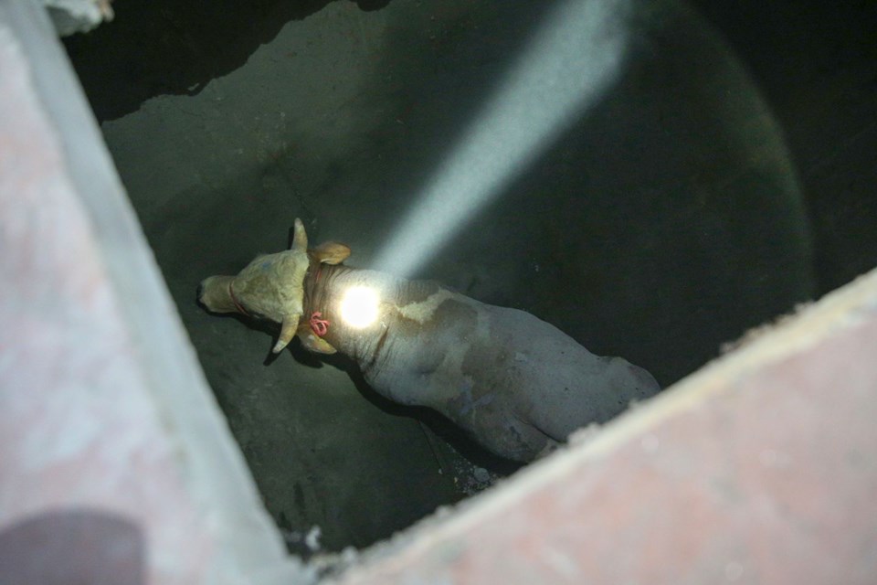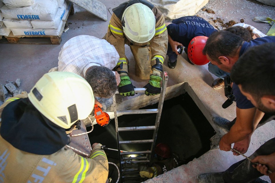 İstanbul Başakşehir'de, bağlı bulunduğu iş yerinin döküm alanından kaçarak 3 metre derinlikteki depoya düşen kurbanlık boğa, itfaiye ekiplerince kurtarıldı.