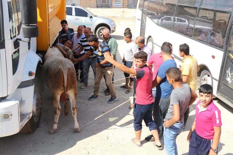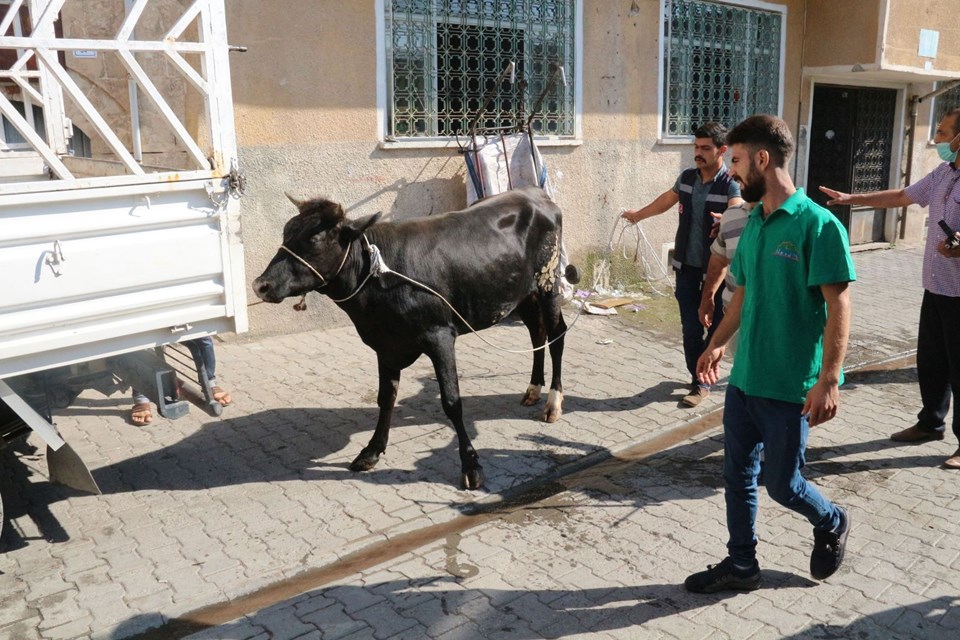 Öte yandan, aynı mahallede Yakup Akgül'e ait kurbanlık boğa da kesime götürülürken sahiplerinin elinden kurtularak çay bahçesine girdi. Belediye ekiplerince uyuşturucu iğne yapılan boğa çay bahçesinden çıkarılamayınca su vurularak rahatlatılmaya çalışıldı. Her şeye rağmen bahçeden çıkmayan boğa çay bahçesinde kesildi.
