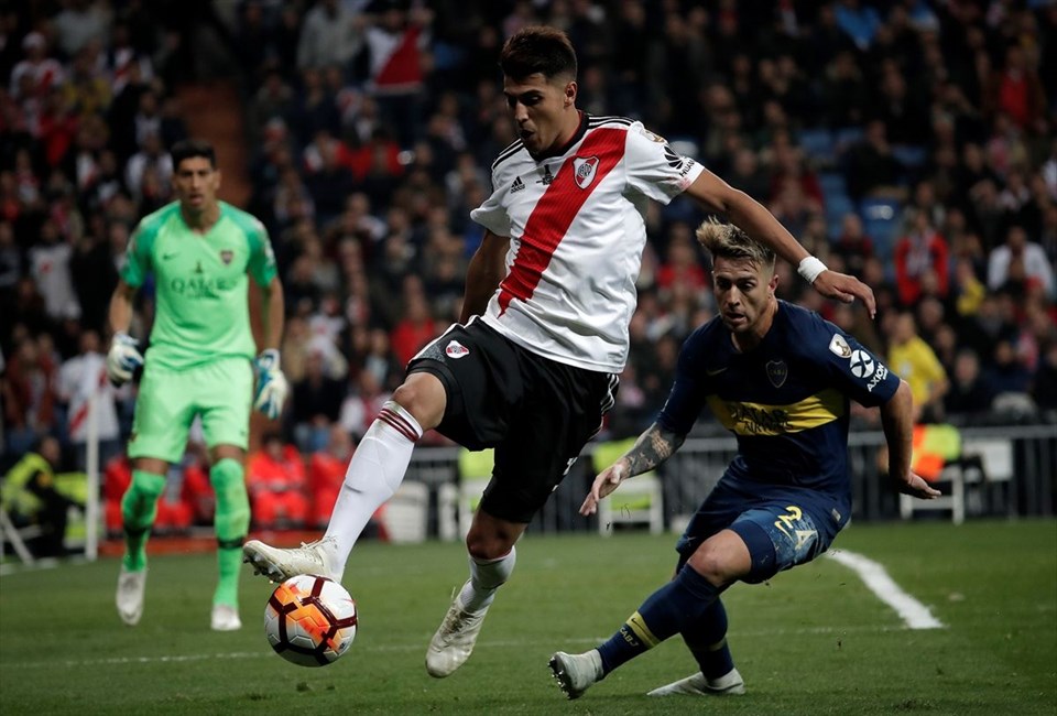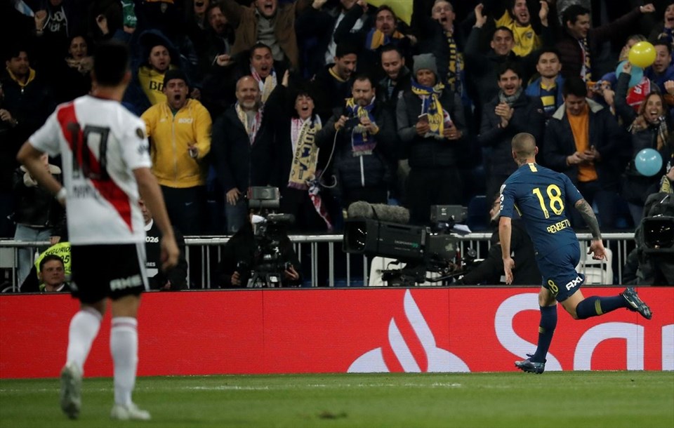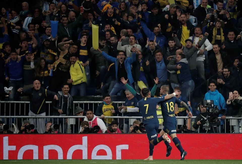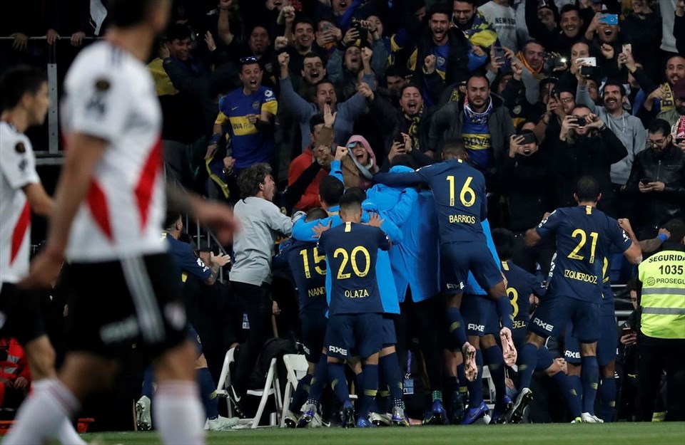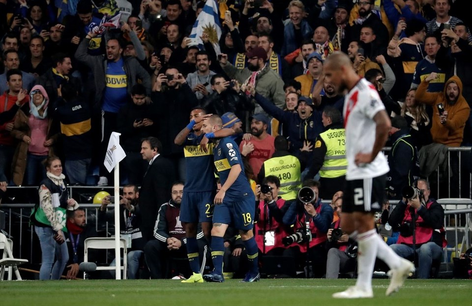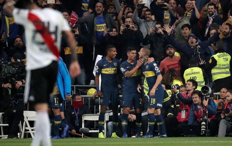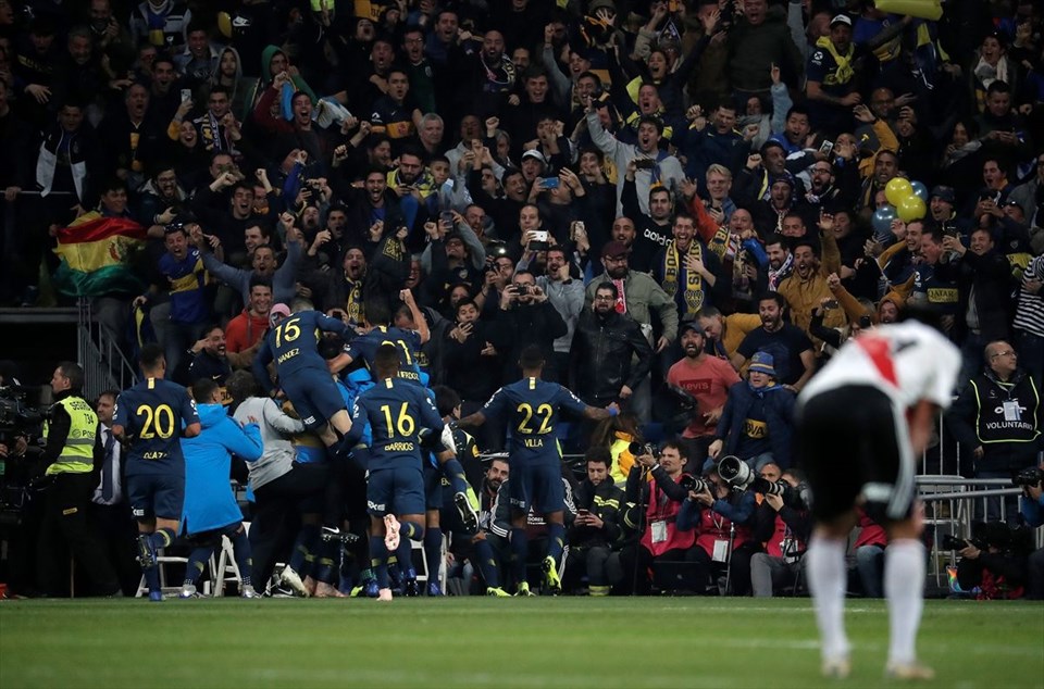 Güvenlik gerekçesiyle iki kez ertelenen final rövanşı, Madrid'de Santiago Bernabeu Stadı'nda oynandı. Maçın 44. dakikasında uzun pasta topla buluşan ve defans oyuncusu Maidana'yı geçerek kaleci Armani ile karşı karşıya kalan Dario Benedetto, topu ağlara göndererek Boca Juniors'ı 1-0 öne geçirdi. İlk yarı bu skorla tamamlandı.