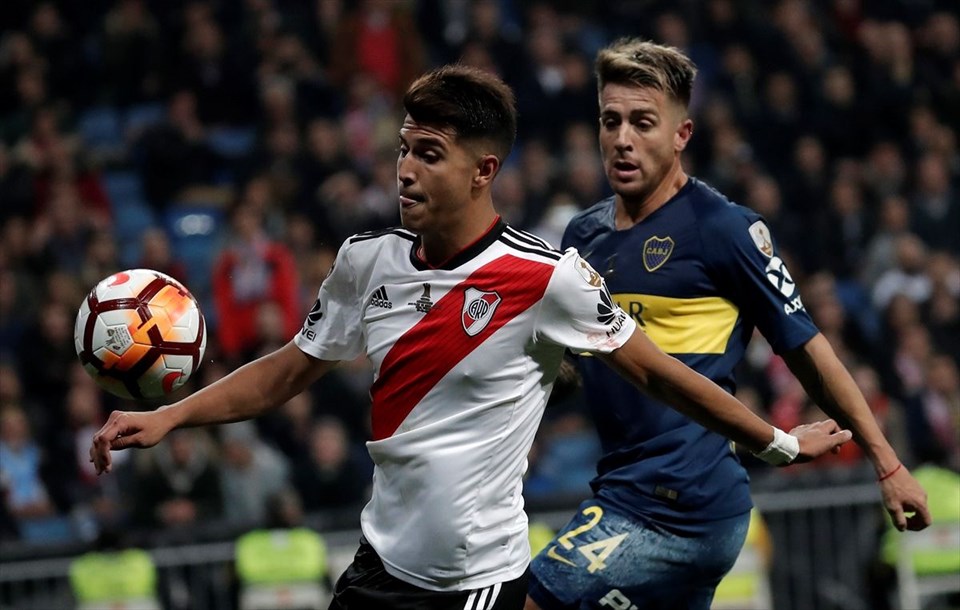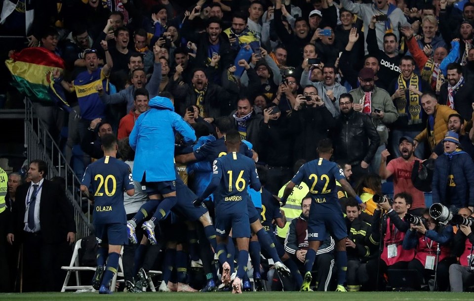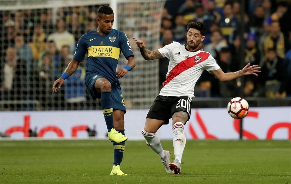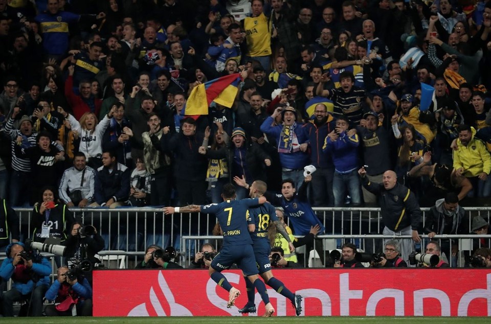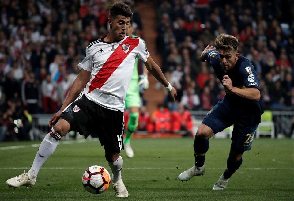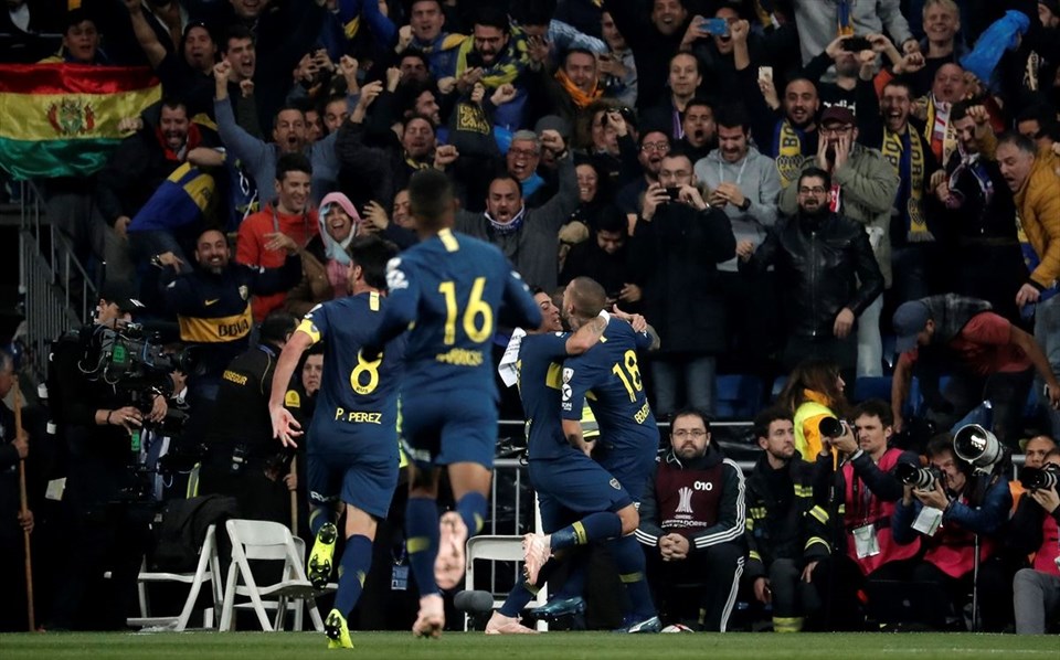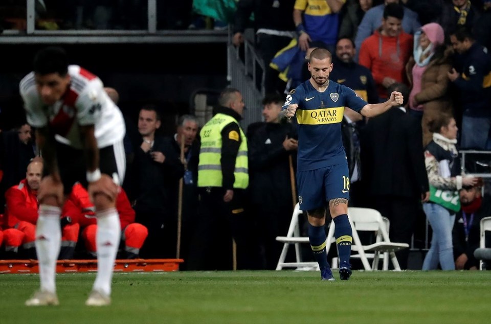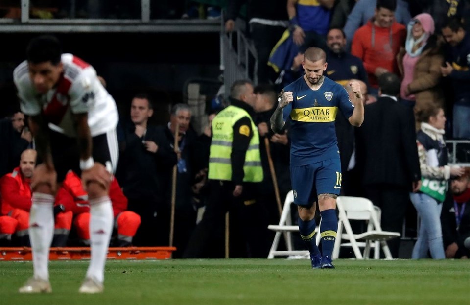 Güvenlik gerekçesiyle iki kez ertelenen final rövanşı, Madrid'de Santiago Bernabeu Stadı'nda oynandı. Maçın 44. dakikasında uzun pasta topla buluşan ve defans oyuncusu Maidana'yı geçerek kaleci Armani ile karşı karşıya kalan Dario Benedetto, topu ağlara göndererek Boca Juniors'ı 1-0 öne geçirdi. İlk yarı bu skorla tamamlandı.
