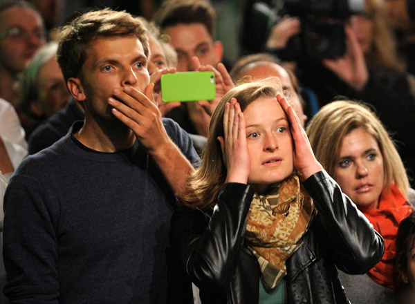 Asıl kutlama Berlin'in diğer yakasındaBBC Berlin muhabiri Jenny Hill, Angela Merkel'in en kötü zaferini kazandığını bildiriyor. Hill, izlenimlerini "Angela Merkel , seçimin ardından partisinin merkezindeki kutlamaya geldiğinde yorgun ve gergin gözüküyordu. Merkel, aracından çıkarken önce basın için, ardından da parti merkezine gelen destekçileri için yüzüne bir gülümseme kondurdu" cümlesiyle aktarıyor.