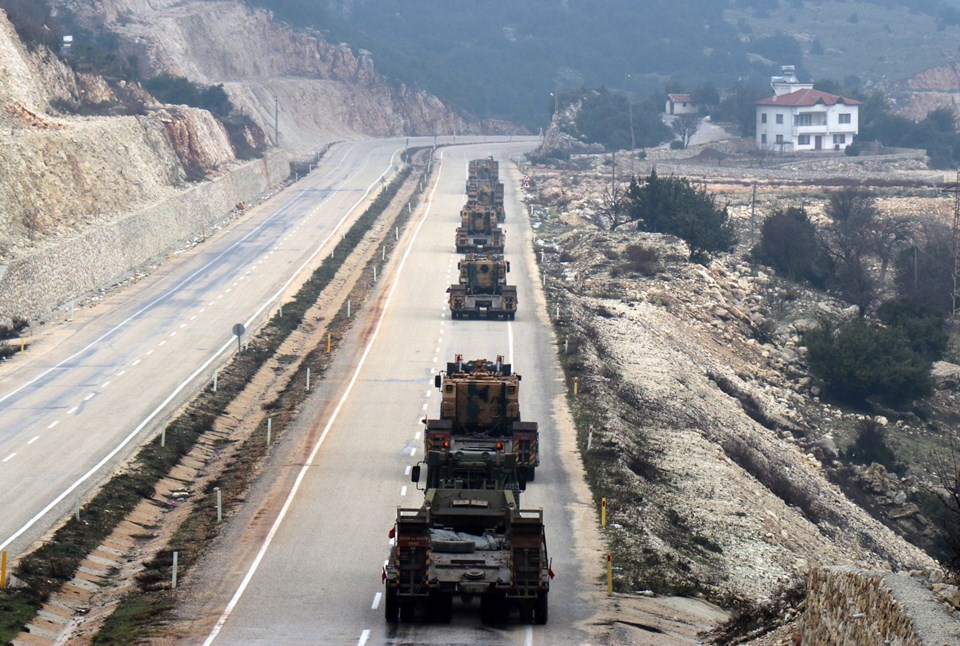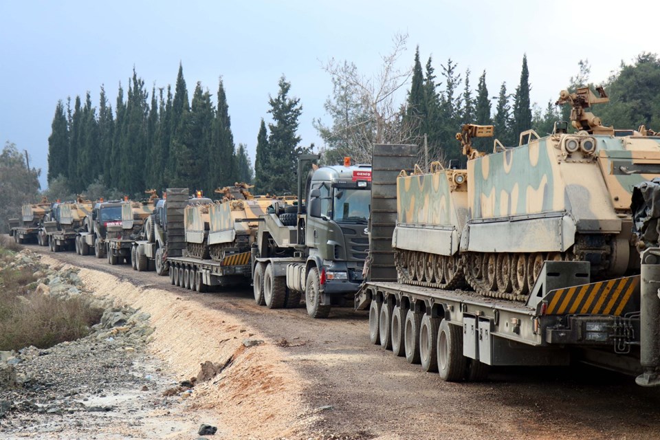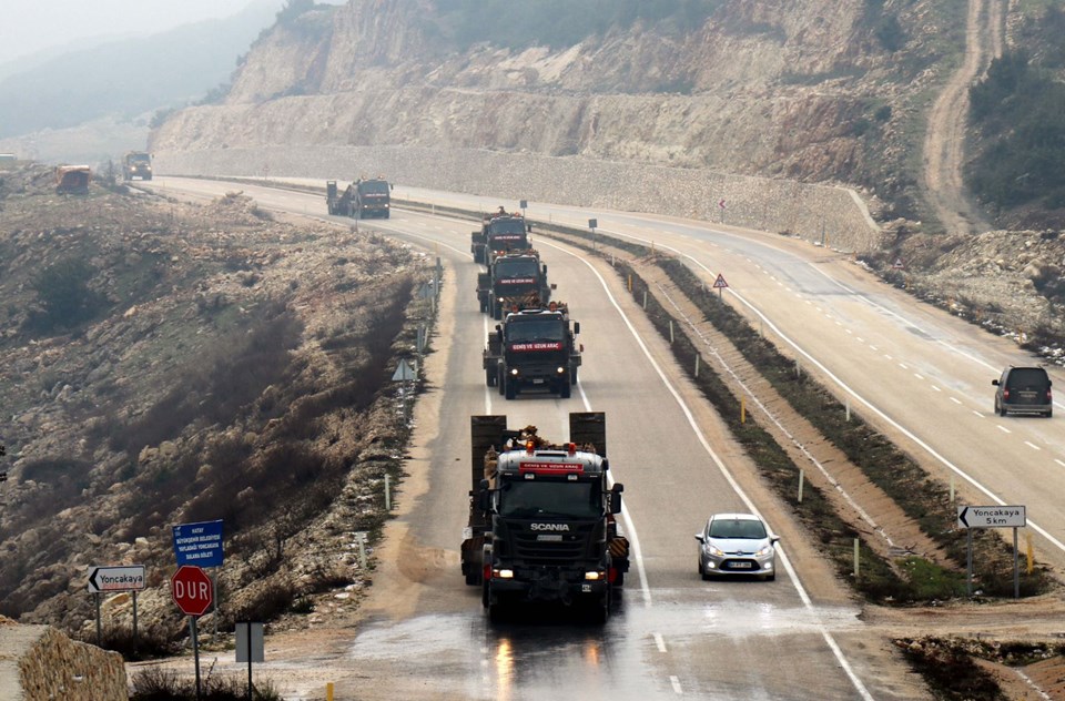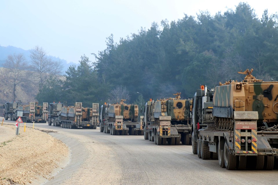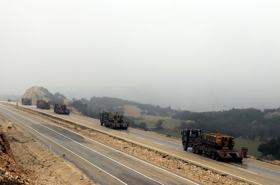 Burada aşaıya indirilen askeri araçlar, İdlib sınırındaki birliklere doğru hareket etti.