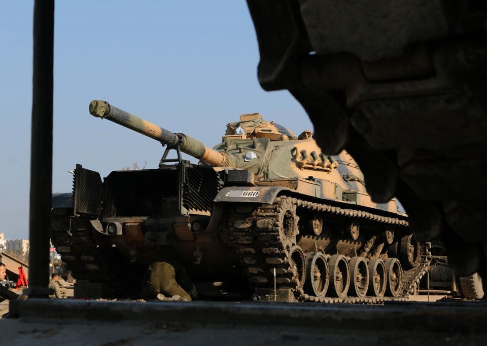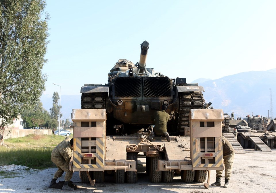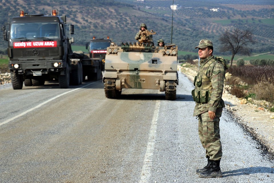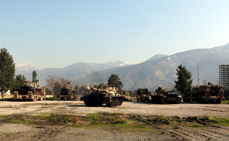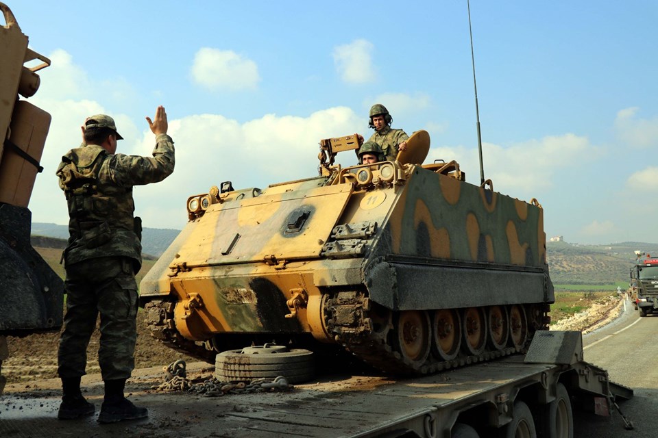 Burada aşaıya indirilen askeri araçlar, İdlib sınırındaki birliklere doğru hareket etti.
