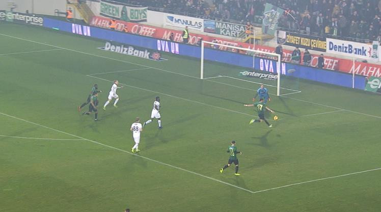 5. dakikada Akhisarspor kontratağında Manu’nun pasıyla sağ kanattan ceza sahası içerisine giren Regattin’in rakibinden sıyrıldıktan sonra kaleye gönderdiği sert şutta kaleci Karius son anda yatarak topu kurtardı.