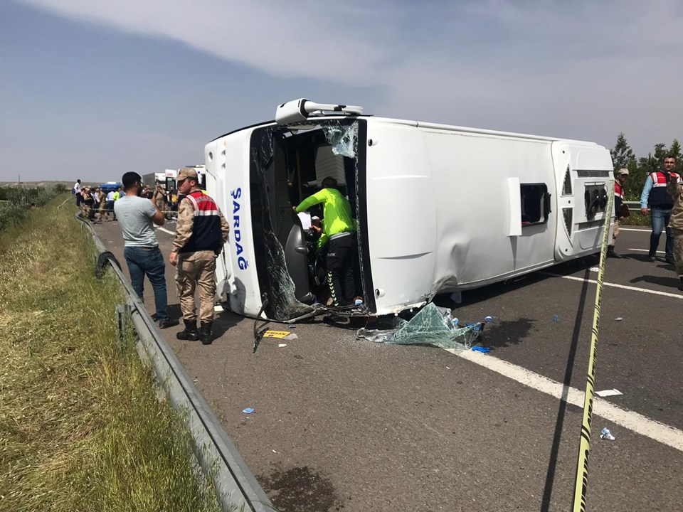 Kahramanmaraş'ın Elbistan ilçesinden, 1 Mayıs kutlamalarına katılmak üzere Şanlıurfa'ya giden sağlık çalışanlarını taşıyan otobüs, sürücüsünün kontrolünden çıkıp, devrildi.