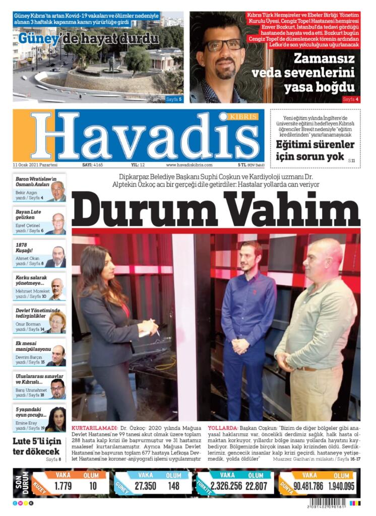 11 OCAK PAZARTESİ KKTC GAZETE MANŞETLERİ