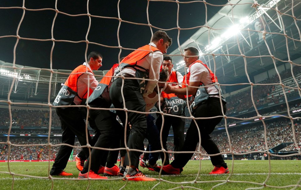Karşılaşmanın 13. dakikasında bir taraftar, sahaya girdi.