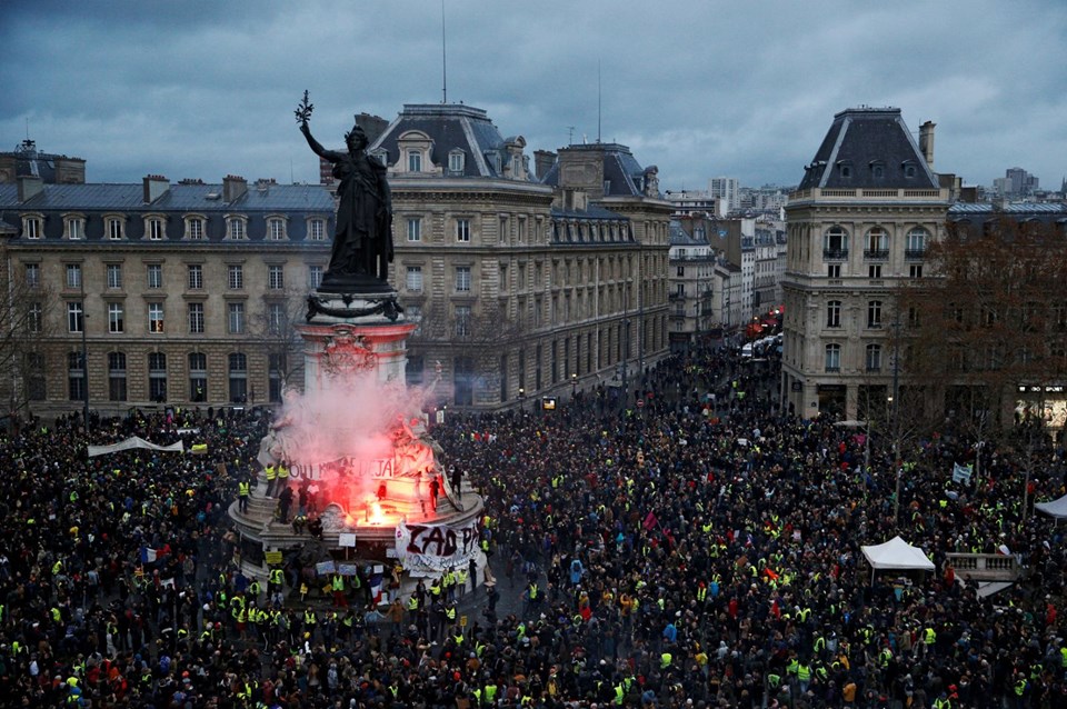 Fransa'da akaryakıt zamlarına ve ekonomik şartların kötüleşmesine tepki olarak 17 Kasım'da başlayan ancak daha sonra Macron yönetimine yönelik öfkeye dönüşen "Sarı Yelekliler'in eylemleri, ülkede son yılların en şiddetli protestosuna dönüştü.