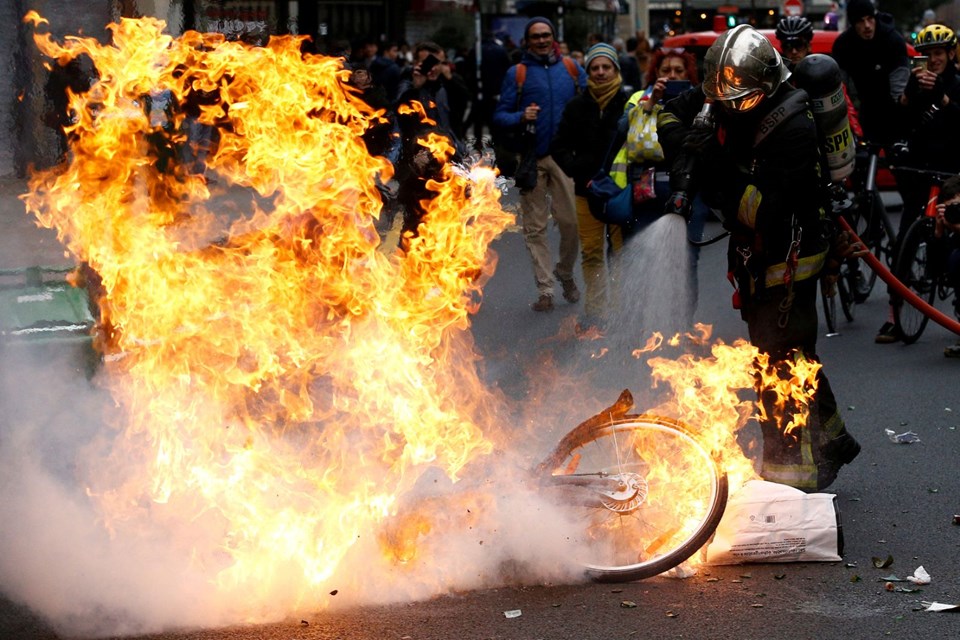 Republique ve Opera gibi farklı noktalarda da eylem yapan göstericiler, birçok mağazayı yağmaladı ve çevreye zarar verdi.