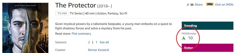 Socipol'ün verilerine göre, Netflix'in ilk Türk dizisi olarak yayına başlayan Hakan: Muhafız (The Protector), IMDb puanlamasında tüm dünyada 5 milyon proje arasında 10. sırayı alarak tüm zamanların en iyi IMDb sıralamasına sahip Türk yapımı olma rekorunu geliştirdi.TÜM ZAMANLARIN REKORUNU KIRDI