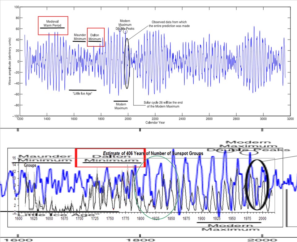 Bilim insanlarının oluşturduğu modelde Güneş’in 2022 yılında zirve yapacak 25. döngüsünde bir çift manyetik dalganın değerlerinin aniden düştüğü, 2030-2040 yılları arasında meydana gelecek 26. döngüsünde ise bu dalgaların birbirlerini sonlandırarak (maunder minimum), Güneş’in etkinliğinde önemli bir azalmaya neden olacağını öngörülüyor.