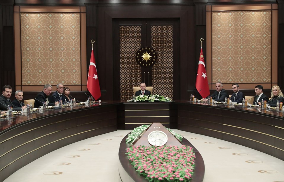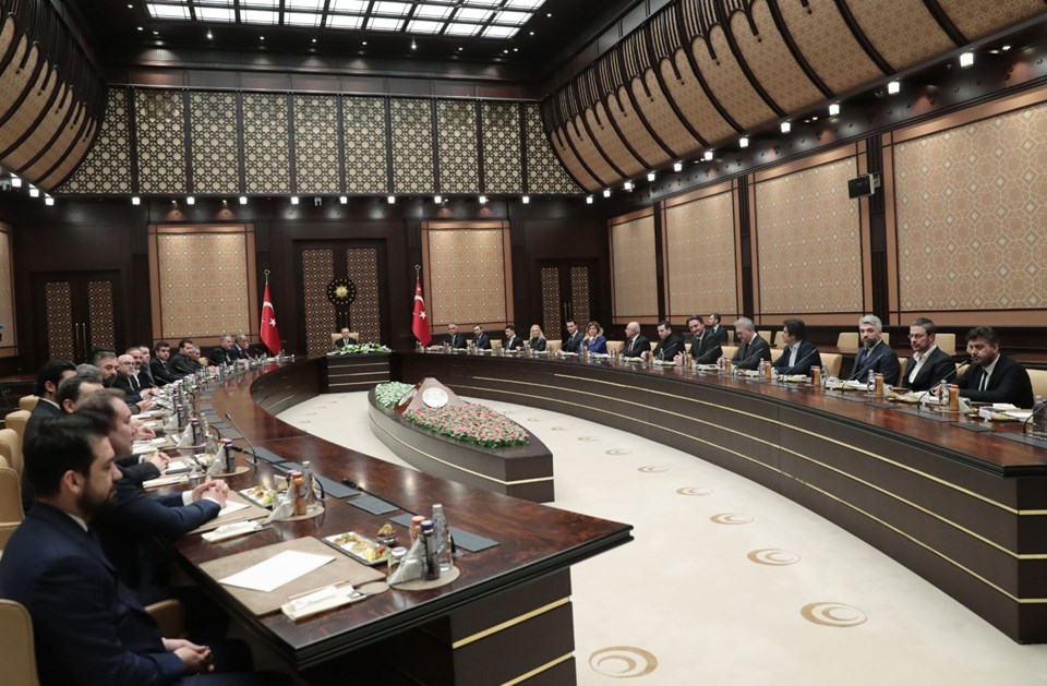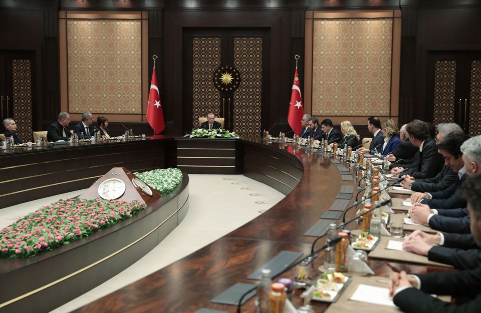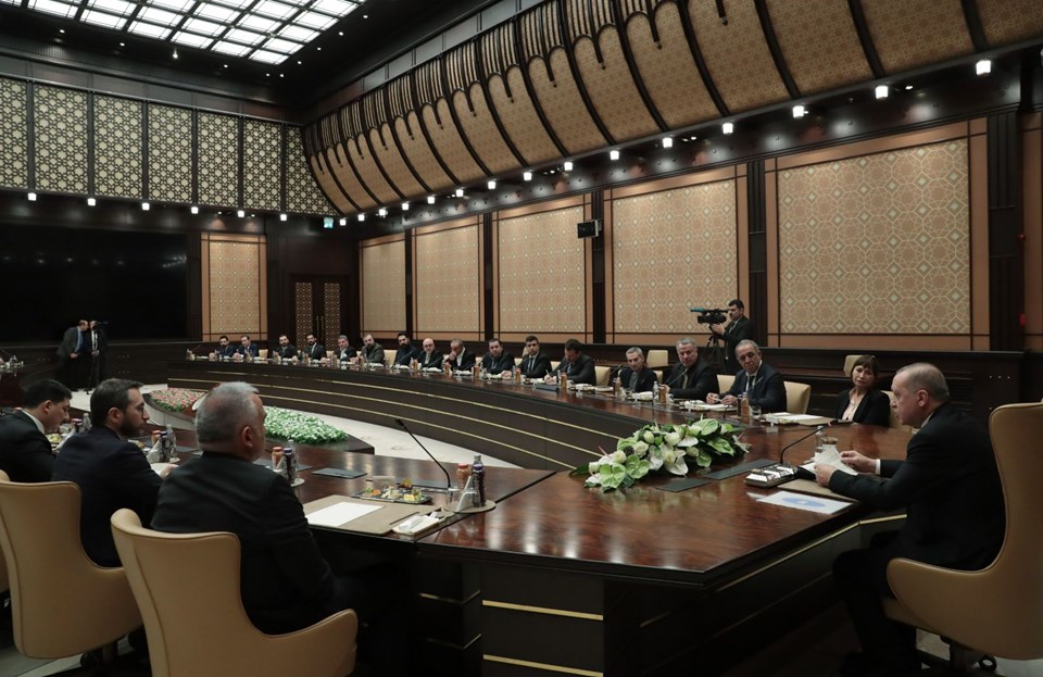 Türkiye Cumhurbaşkanı Recep Tayyip Erdoğan, Cumhurbaşkanlığı Külliyesi'nde sinema sektörü temsilcilerini kabul etti. Görüşme bir saat 10 dakika sürdü.