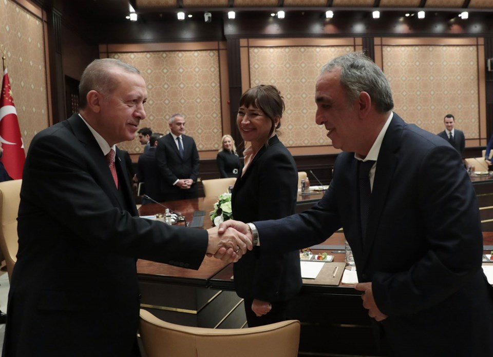 Erdoğan, Cumhurbaşkanlığı Külliyesi'nde sinema sektörü temsilcilerini kabul etti.