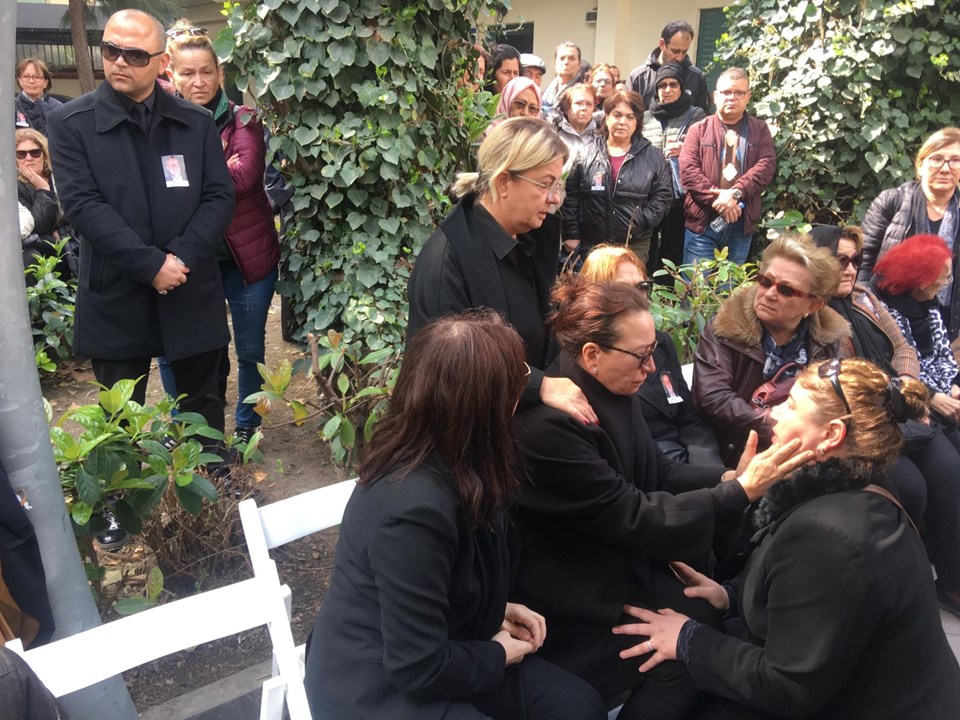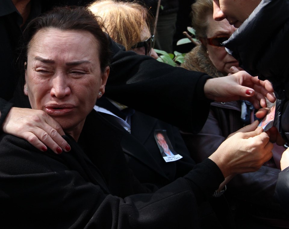 Cami avlusuna yakınlarının desteğiyle gelen Demet Akbağ ve oğlu Ali Çika burada taziyeleri kabul etti. Akbağ'ın bu sırada taziyeye katılanların yakasındaki eşinin fotoğrafını alarak öptüğü ve gözyaşı döktüğü görüldü.