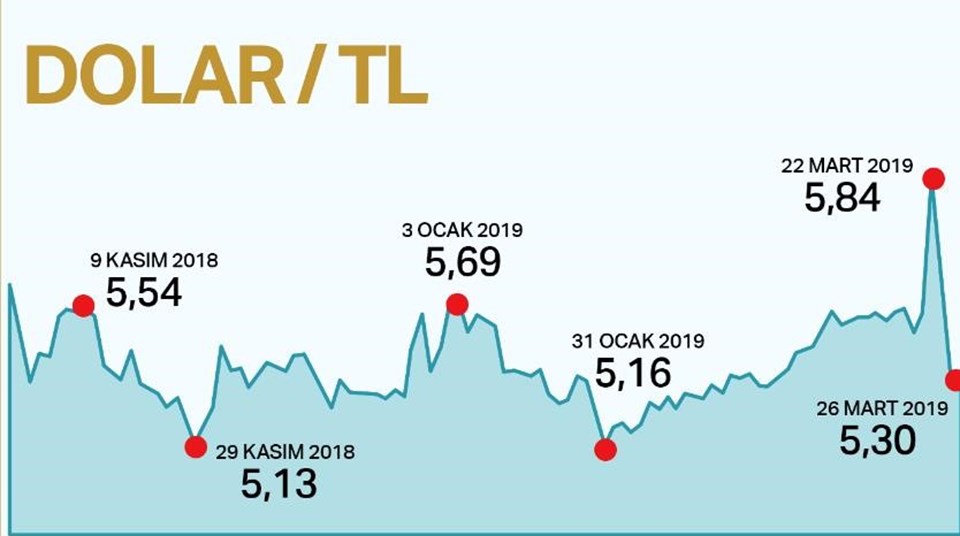 Seçimlere bir haftadan az süre kala dolar kurunda yaşanan türbülans bu sabah itibariyle yerini daha stabil bir kur seviyesine bıraktı. Merkez Bankası’nın önceki gün attığı adımlarla dolar, Türk Lirası karşısında düşüşünü dün de sürdürdü. Geçtiğimiz hafta 5.85 TL seviyesine kadar yükselen dolar dün 5,54 TL’ye geriledi. Dolar, TL karşısında salı kapanışında 5,33'ü; euro ise 6,10 seviyelerini gördü.