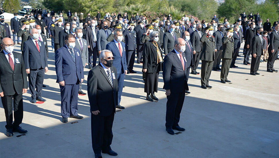 Dr. Fazıl Küçük Anıtı’nda yer alan tören saat 10.26’da, çelenklerin anıta sunulmasıyla başlayarak, saygı duruşu ve İstiklal Marşı ile bayrakların göndere çekilerek yarıya indirilmesiyle devam etti.