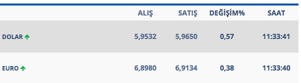 Saat 11.30 dolar ve euro:
