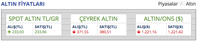 Altın fiyatları ne kadar? : Altın fiyatları güne 231 liradan başlamıştı. Çeyrek altın serbest piyasada 381 liradan satılırken, yarım altının fiyatı 762 liraydı. Gün sonunda çeyrek altın 380 lira, gram altın 233 lira oldu.