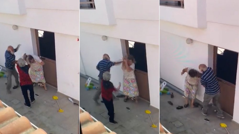 Olayın video kaydı da yayımlandı. Komşular tarafından kayda alınan olay sırasında, yaşlı adamın, başının arkası da dahil olmak üzere kadına defalarca vurduğu görülüyor.