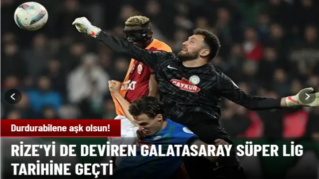 Süper Lig'in 24. haftasında lider Galatasaray, Çaykur Rizespor'a konuk oldu. Sarı kırmızılılar mücadeleyi Victor Osimhen'in golleriyle 2-1 yendi. Galatasaray bu sezon 23 maçta 20. galibiyete ulaştı.