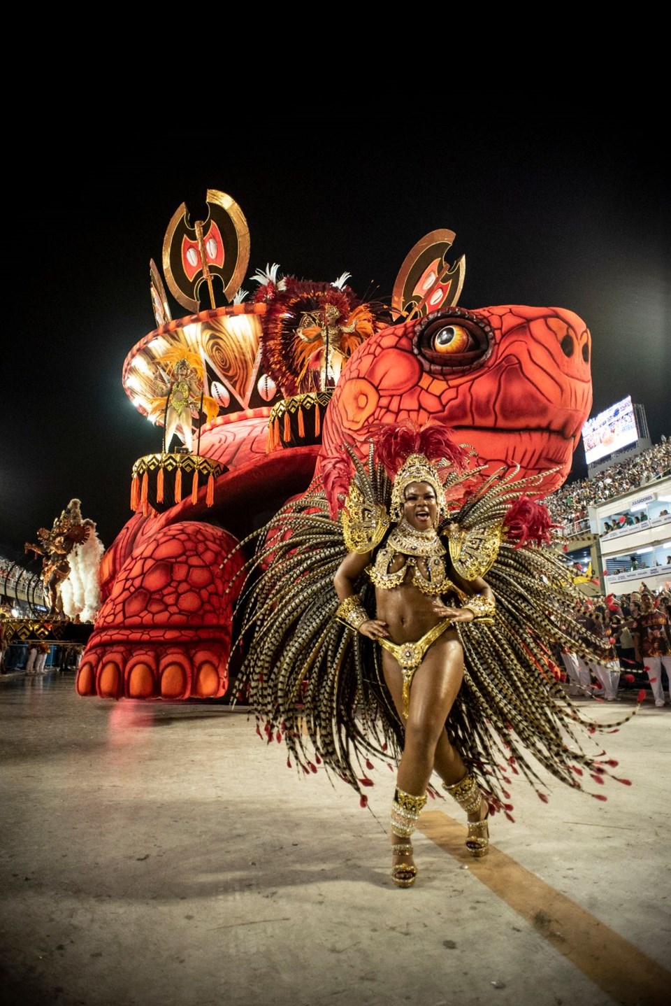 Olağanüstü karnaval için Brezilya'nın en ünlü samba okullarının öğrencileri danslarını sergilerken, festival özel hazırlanan rengarenk kıyafetlere sahne oldu.