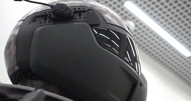 Zırhı giyen askerin görüş alanı olan siyah cam aslında bir ekran görevini de görüyor.
