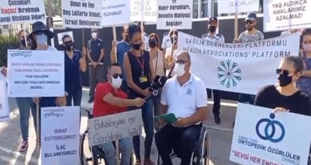 Sağlık Dernekleri Platformu bugün Başbakanlık ve Sağlık Bakanlığı önünde eylem yaptı ve taleplerini içeren mektupları sundu. Platform; Alzheimer Derneği, Diyaliz ve Böbrek Hastaları Dayanışma Derbeği, Evrensel Hasta Hakları Derneği, Kemal Saraçoğlu Lösemili Çocuklar ve Kanserle Savaş Vakfı, Kıbrıs Türk Multiple Skleroz Derneği, Kıbrıs Türk Ortopedik Özürlüler Derneği, KKTC Engelliler Dayanışma Derneği, Thalassaemia Derneği ve Yaşlı Hakları ve Ruh Sağlığı Derneği’nden oluşuyor. “Bakabilseydiniz Eğer Görebilirdiniz Belki”, “İlaçlara Günüde Ulaşmak İstiyoruz”, “Bakımevlerinden Sorumlu Kim Açıklayın”, “İhmal Ediyorsunuz Ölüyoruz” sloganları yazılı pankartlar taşınan eylemde ilk olarak Başbakanlık önünde basına açıklama yapıldı. Basın açıklamasını dernekler adına Günay Kibrit okudu. Kibrit, platformun sağlık hakkının vazgeçilmezliği ve ihlal edilmesinin doğuracağı vahim sonuçları defalarca dile getirdiğini, sağlık hakkının yıllardır ihmal edildiğini söyledi. Kibrit, gerek kronik hastalığı bulunanlar ve engelliler, gerekse akut nedenlerle sağlık hizmetlerine ve tıbbi malzemelere ihtiyaç duyan on binlerce insanın yıllardır katlanarak büyüyen sorunlar nedeniyle kaliteli ve çağdaş sağlık hizmetlerinden yoksun kaldığını belirtti. Covid-19 pandemisinin yarattığı sağlık krizinin ise var olan sorunların daha da derinleşmesine ve birçok insanın yaşam hakkını tehdit eder noktaya gelmesine neden olduğunu söyleyen Kibrit, hayatının büyük kısmını düzenli sağlık hizmeti alma gerekliliği içinde geçiren kronik hastaların bu konuda yaşanan yetersizliklerin birinci elden mağduru ve tanığı durumunda olduğunu dile getirdi.
