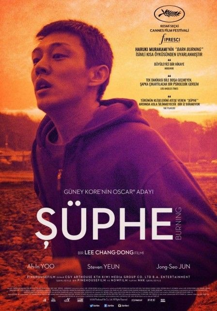 - Şüphe - Kumandanı Öldürmek ve Sahilde Kafka gibi eserlerin yazarı, acayip, gerçek-üstü Haruki Murakami’nin kısa öyküsünden uyarlanıyor “Şüphe”. Adını bile söylemesi zor bu yazarın sinemaya uyarlanmış halini nasıl izleyeceğiz, demeyin. Filmin yönetmeni Chang-dong Lee, bu kez izlemesi en kolay filmi çekmiş. Fakir bir oğlan, zengin bir “adam” ve güzel bir genç kız arasındaki karanlık aşk hikayesini sınıf farkının yarattığı gerilim ve takıntılarla örerek, ustalıkla anlatıyor. Cannes’ten 2 ödül alan, Güney Kore’nin Oscar adayı filmde The Walking Dead’den tanıdığımız Steven Yeun da rol alıyor. Aktörü kendi dilinde dinlemek, izleyene de iyi geliyor. Jeon Jong-seo ve Yoo Ah-in filmin diğer başrolleri.